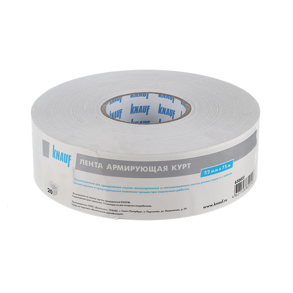 Лента армирующая КНАУФ-Курт — это армирующая лента, изготовленная из белой специальной бумаги с армирующими синтетическими волокнами. Предназначена для армирования стыков гипсокартонных и гипсоволокнистых листов разных видов и с любыми типами кромок и предотвращения появления трещин при отделочных работах.