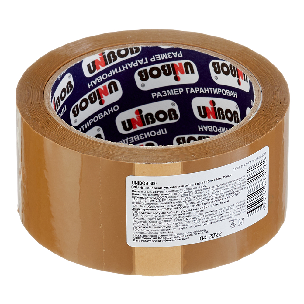 Лента клейкая упаковочная Unibob коричневая 48 мм 66 м