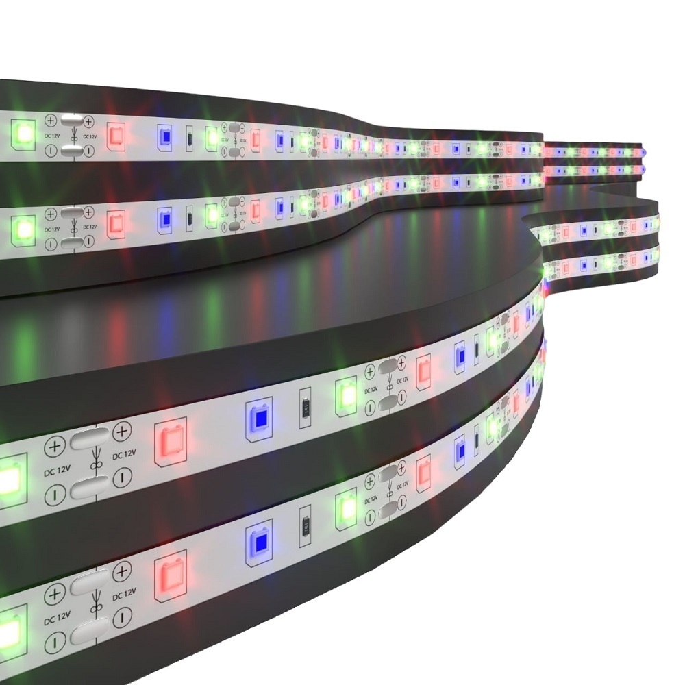 Светодиодная лента 12 В предназначена для декоративного и функционального освещения интерьеров, подсветки зеркал и предметов мебели. Лента поставляется в рулоне с припаянным выводом проводов с цветовым обозначением для удобного подключения. Длина ленты составляет 5 м. Светодиодную ленту можно укоротить, отрезав нужную часть в местах для реза, а при необходимости удлинить, используя коннекторы. Гибкость ленты и надежная клеевая основа позволяют устанавливать ленту на различные поверхности. Для подключения светодиодной ленты к сети питания используются понижающие трансформаторы, преобразующие 220 В переменного тока в 12 В постоянного тока (AC 220 — DC 12V) Широкий диапазон температуры окружающей среды позволяет использовать ленту в неотапливаемых помещениях при температуре до -25°С. Срок службы светодиодов составляет 50000 часов.