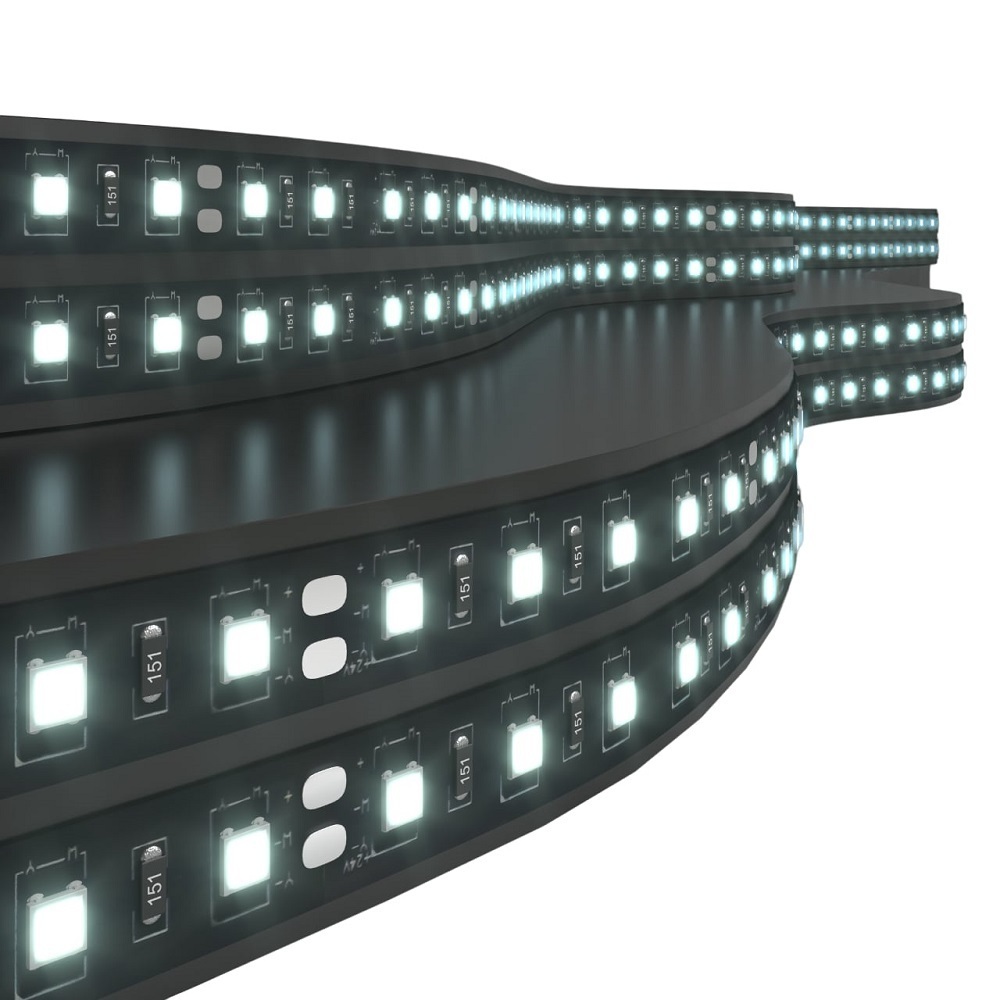 Используется для создания световых композиций в современных интерьерах, а также для декоративной подсветки зеркал и предметов мебели. Создавайте световые линии на темных поверхностях. Лента поставляется в рулоне с припаянным выводом проводов с цветовым обозначением для удобного подключения. Длина ленты составляет 5 м. Светодиодную ленту можно укоротить, отрезав нужную часть в местах для реза, а при необходимости удлинить, используя коннекторы. Гибкость ленты и надежная клеевая основа позволяют устанавливать ленту на различные поверхности. Для подключения светодиодной ленты к сети питания используются понижающие трансформаторы, преобразующие 220 В переменного тока в 24 В постоянного тока (AC 220 — DC 24V). Широкий диапазон температуры окружающей среды позволяет использовать ленту в неотапливаемых помещениях при температуре до -25С. Срок службы светодиодов составляет 50000 часов.