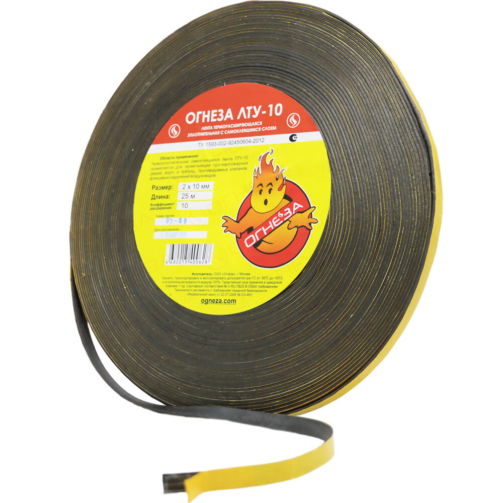 Лента ОГНЕЗА-ЛТУ – самоклеящийся противопожарный уплотнитель, предназначенный для предотвращения распространения огня в примыкающие помещения через пересечения противопожарных преград или ограждающих строительных конструкций с нормируемыми пределами огнестойкости, а также по системе дымоудаления и вентиляции. Используется для уплотнения зазоров и повышения огнестойкости противопожарных дверей, ворот, люков, окон, клапанов противодымных, фланцевых соединений воздуховодов.