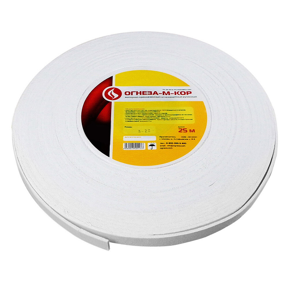 Лента уплотнительная Огнеза МКОР без скотча негорючая кремнеземная 3х20 мм 25 м