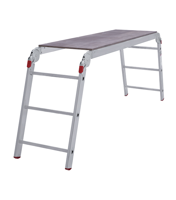 Предназначена для всех видов работ, требующих большой площадки, выполненной из антисептированной фанеры. Лестница-помост легко устанавливается и складывается в компактное положение для хранения и транспортировки, шарнирные замки регулируются одной рукой и надёжно фиксируются автоматически. Ступени с рифлением для безопасного подъёма и спуска.
