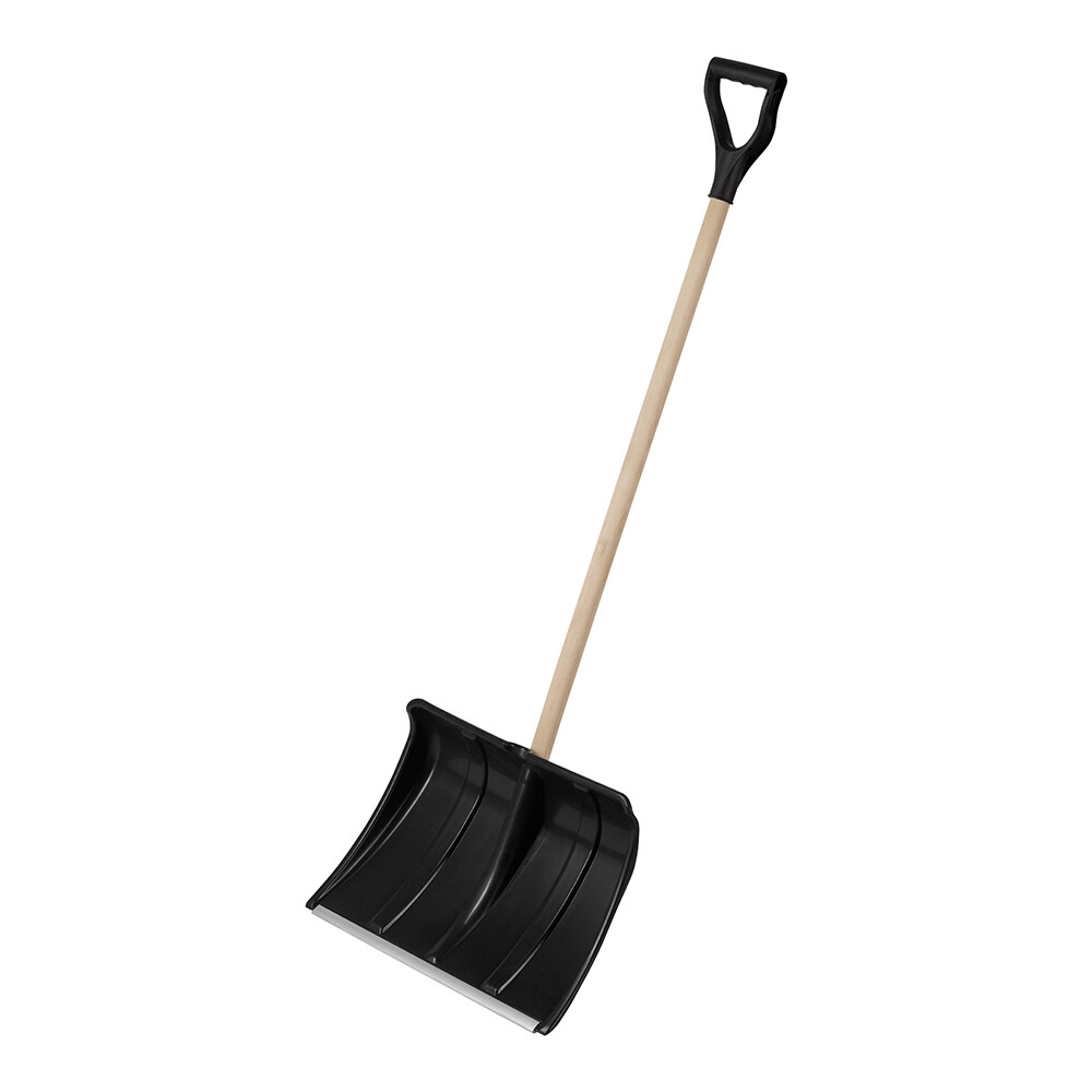 Лопата обладает высокой степенью прочности. Кромка лопаты защищена алюминиевым профилем с небольшим закруглением по краю. Это позволяет легче убирать снег в местах, где территория имеет неровности. Поверхность лопатного ковша гладкая, что значительно снижает вероятность налипания снега. Поставляется с деревянным шлифованным черенком 1-го сорта и пластиковой V-образной ручкой.