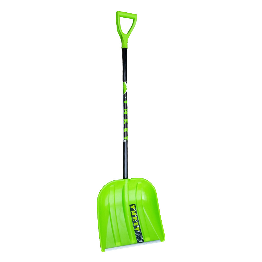 Ковш лопаты изготовлен из первичного блоксополимера пропилена специальной марки. Используемый суперконцентрат «Салатовый» придаёт яркий внешний вид лопате. Благодаря качественному материалу получено изделие высокой прочности. Кромка лопаты защищена специальным алюминиевым профилем с небольшим закруглением по краю. Это позволяет легче убирать снег, где территория не очень ровная. Поверхность лопатного ковша гладкая, за счет постоянного контроля за состоянием оснастки, что значительно снижает вероятность налипания снега. Габариты ковша лопаты и её небольшой вес делают её одной из самых востребованных снегоуборочных лопат и позволяют использовать её не только для уборки снега, но и для зерновых работ. Черенок изготовлен из алюминиевого профиля, окрашенного порошковой окраской, что позволило значительно снизить вес лопаты в сборе и избежать свойства алюминия пачкаться во время соприкосновения с ним. Соединение ковша лопаты с черенком происходит с помощью пружинного металлического фиксатора, позволяющего её собрать и разобрать.