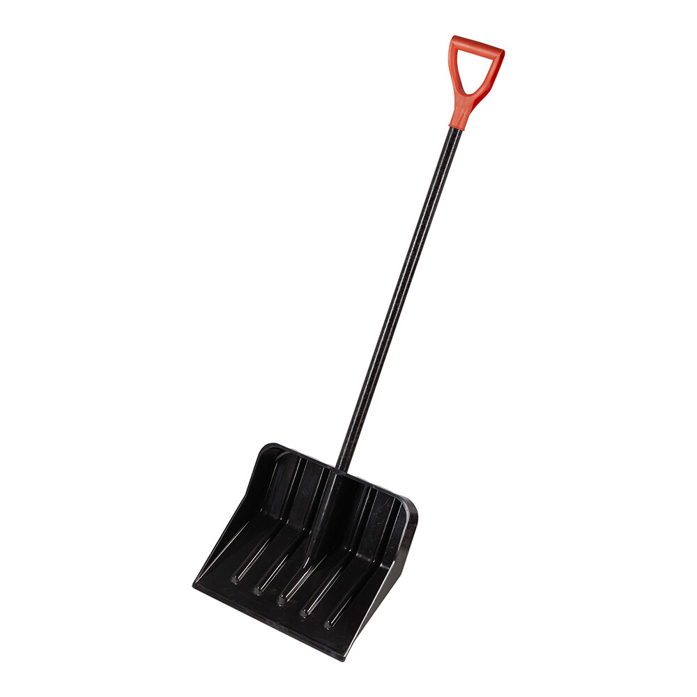 Лопата из поликарбоната обладает высокой прочностью, выдерживает большие нагрузки, не повреждает асфальт и брусчатку, так как не нуждается в усилении металлической планкой. Устойчива к солям и другим агрессивным средам. Данная лопата оснащена V-образной ручкой и черенком из фибергласа, что позволяет значительно снизить вес лопаты в сборе, одновременно сохранив прочность.