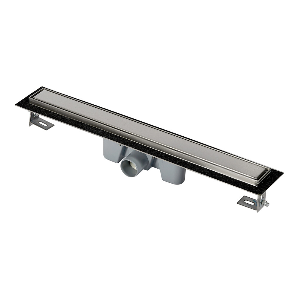 Имеет вытянутую прямоугольную форму, его также называют дренажным каналом или душевым лотком. Сверху конструкция трапа закрывается декоративной решеткой из нержавеющей стали. Это идеальное решение для помещений и с постоянным, и с редким водоотведением. Трап устанавливается в пол, общую высоту монтажа можно регулировать от 90 до 117 мм. Трап сделан из стали, с широким диапазоном рабочих температур, устойчив к воздействию воды и моющих средств. Внутри корпуса установлен сифон.