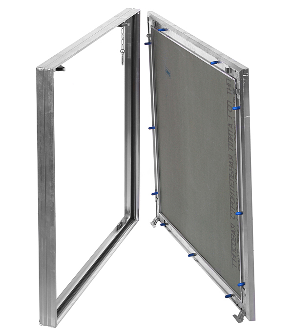 Предназначен для скрытого доступа к инженерным, вентиляционным, сантехническим, электрическим коммуникациям, а также к скрытым нишам. Не требует подрезки плитки, потому как оклеивается отделочными материалами внахлест, что позволяет сохранять раскладку на люке идентичной раскладке материалов на остальной части стены, оставляя люк невидимым. Подходит под облицовку любыми видами керамической плитки, а также мозаики толщиной не более 10 мм. Открывается нажатием. Для открывания люка достаточно нажать рукой на дверцу и утопить ее приблизительно на 3 мм. Нажимные замки самостоятельно откроют дверцу. Дверца люка приоткроется на угол до 30°. Далее, придерживая дверцу, необходимо отсоединить страховочную цепочку и снять дверцу с неподвижных штырей (ригелей) рамы.