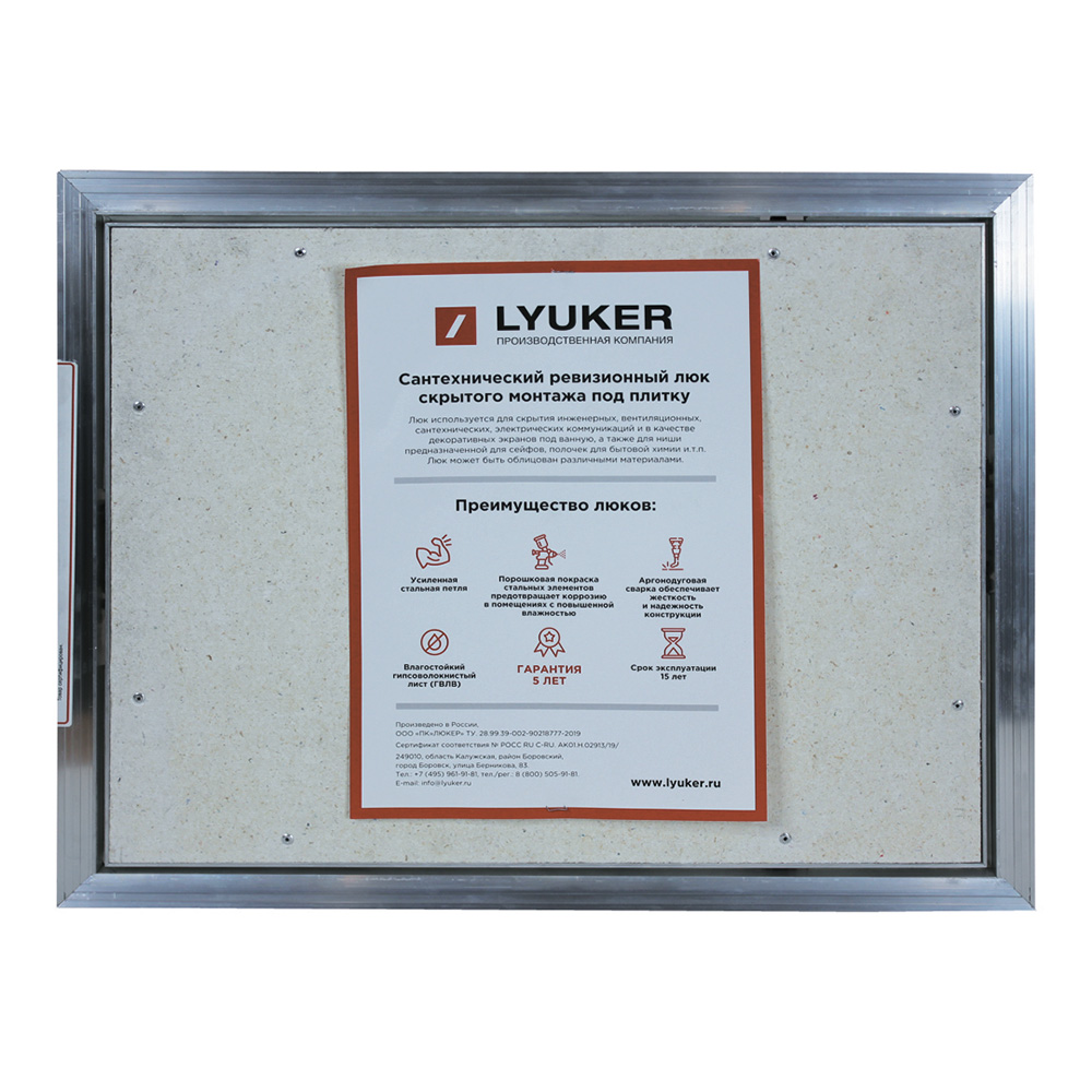Люк ревизионный под плитку Lyuker AL-KR алюминиевый 400х500 мм скрытый нажимной