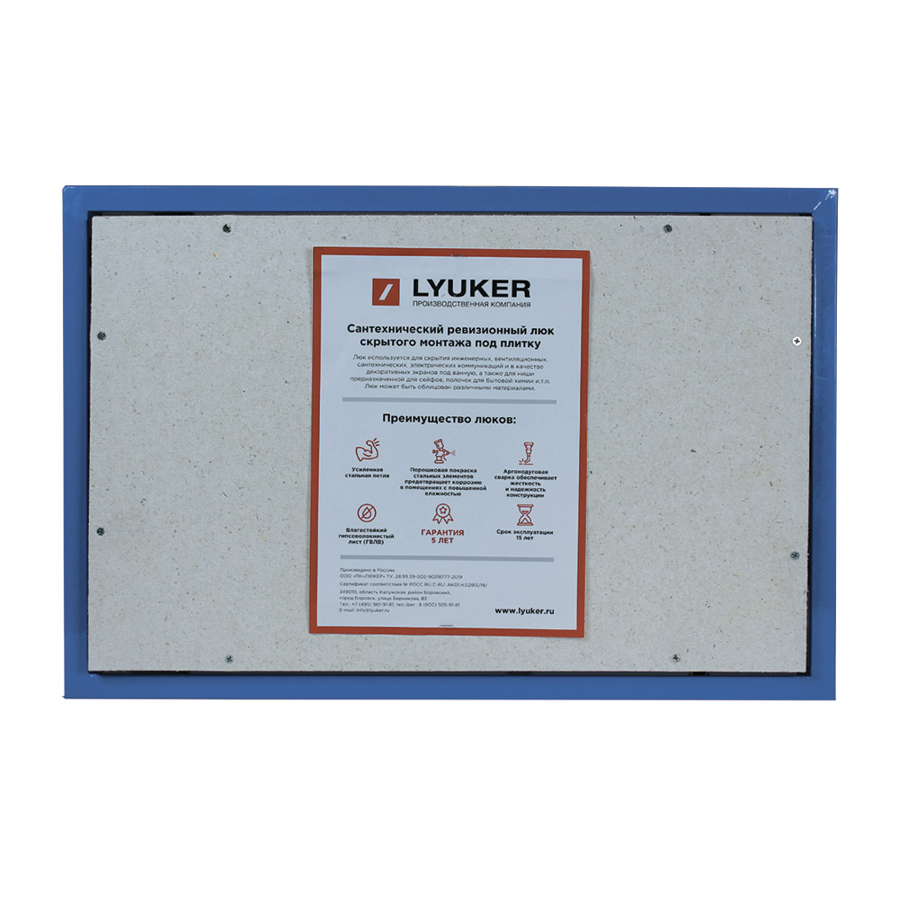 Люк ревизионный под плитку Lyuker К стальной 400х600 мм скрытый нажимной