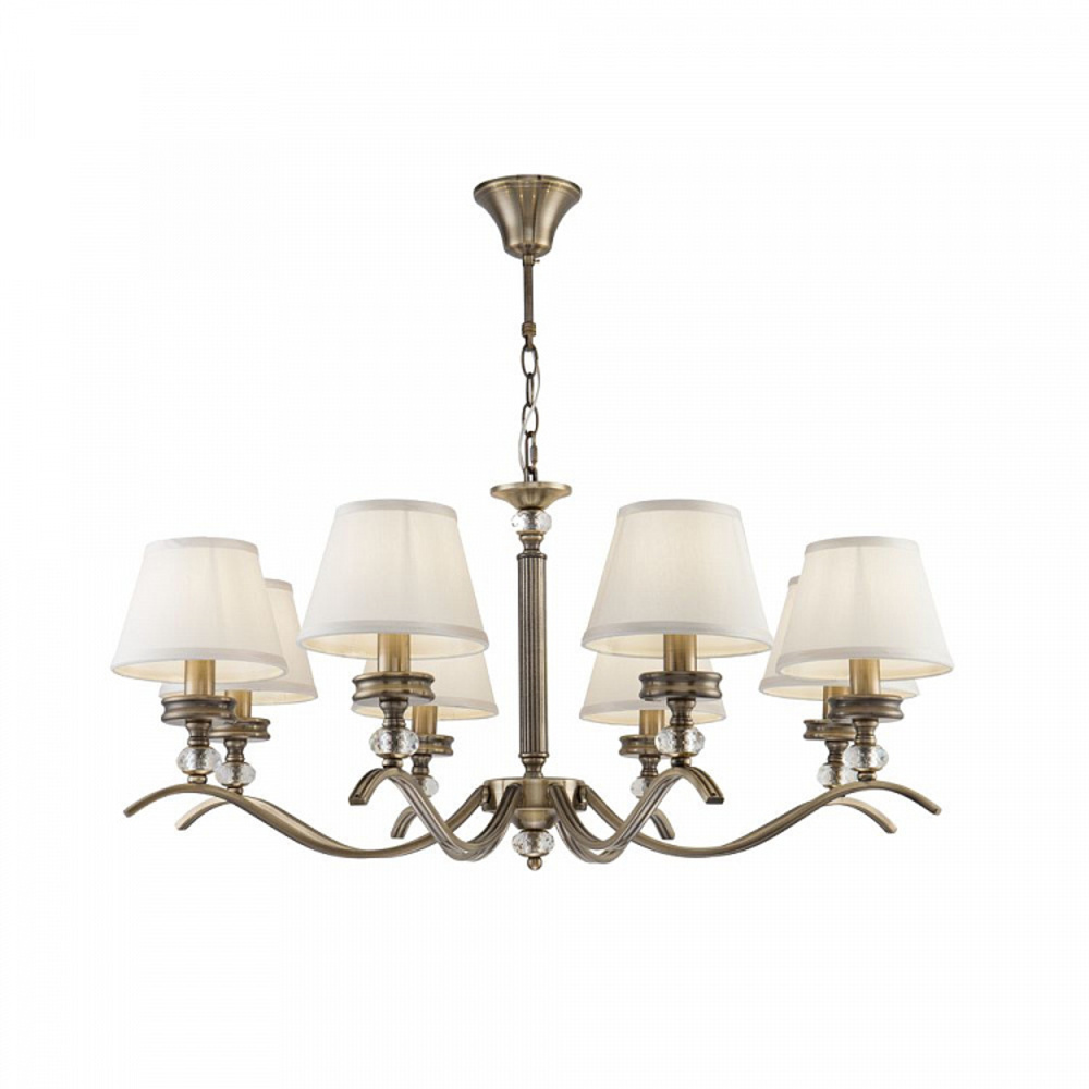 Предназначена для освещения внутренних помещений. Элегантные светильники в классическом стиле. Металлическая арматура светильников Alessandra цвета бронзы сочетается с белым цветом абажуров из ткани. Абажуры окантованы лентой в тон. Дизайн арматуры дополнен декоративным элементом из стекла.