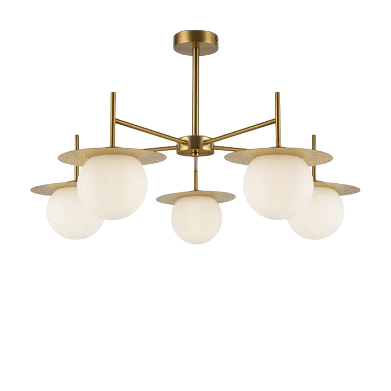 Предназначена для освещения помещения. Дизайн серии Camelia объединил трендовые фактуры и силуэты. Металлическая арматура окрашена в цвет латуни. Благородный оттенок выгодно подчеркнут белыми плафонами из матового стекла. Их округлая сферическая форма – актуальный тренд в современном дизайне. Оригинальное решение – плоские розетки в тон арматуре. Серия включает потолочные люстры на 5, 8 плафонов и бра, что позволяет организовать как основное, так и зональное освещение. Компактные габариты светильников актуальны, в том числе, для невысоких потолков. Серия займет достойное место в интерьерах современных спален и гостиных, оформленных в стиле эклектика, mid-century modern, минимализм.