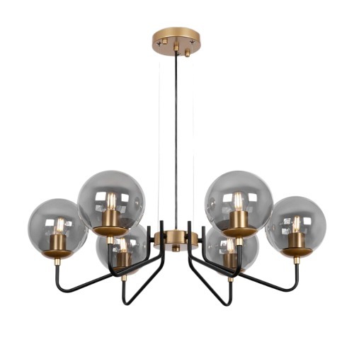 Предназначена для декоративного, интерьерного и общего освещения различных помещений. Серия современных светильников Moricio с узнаваемым дизайном и оригинальной палитрой. Актуальное сочетание цвета латуни и матового черного в арматуре. Сферические плафоны идеально вписываются в геометрию светильника. Глянцевое стекло отражает модный тренд на округлые формы и радует нетривиальным дымчатым цветом. Серия включает подвесные светильники на 6 и 8 ламп, одиночный подвес и бра. С помощью серии Moricio легко организовать комплексное многоуровневое освещение. Динамичный дизайн интегрируется в современные интерьеры, выполненные в стиле лофт, хай-тек, минимализм. Лампы в комплект не входят.
