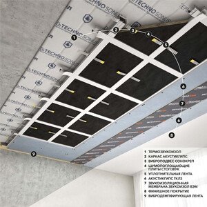 Тонкая самоклеящаяся мембрана применяется в звукоизоляционных конструкциях потолка, стен, перегородок в помещениях любого типа в сочетании с гипсокартоном (ГКЛ, ГВЛ, Фанера и пр). Снижает воздушный шум в слышимых диапазонах частот, так же снижает вибрацию. Улучшает шумоизоляцию при минимальной толщине системы. Подходит для использования в жилых и нежилых помещениях.