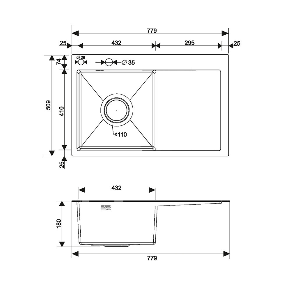 Сделана из нержавеющей стали. Не окисляется при контакте с водой, имеет идеальную гладкую поверхность. Проста в уходе — достаточно мягкого чистящего средства и губки. Не терпит абразивов. Вся грязь удаляется быстро и без проблем, а раковина будет сиять как новая.