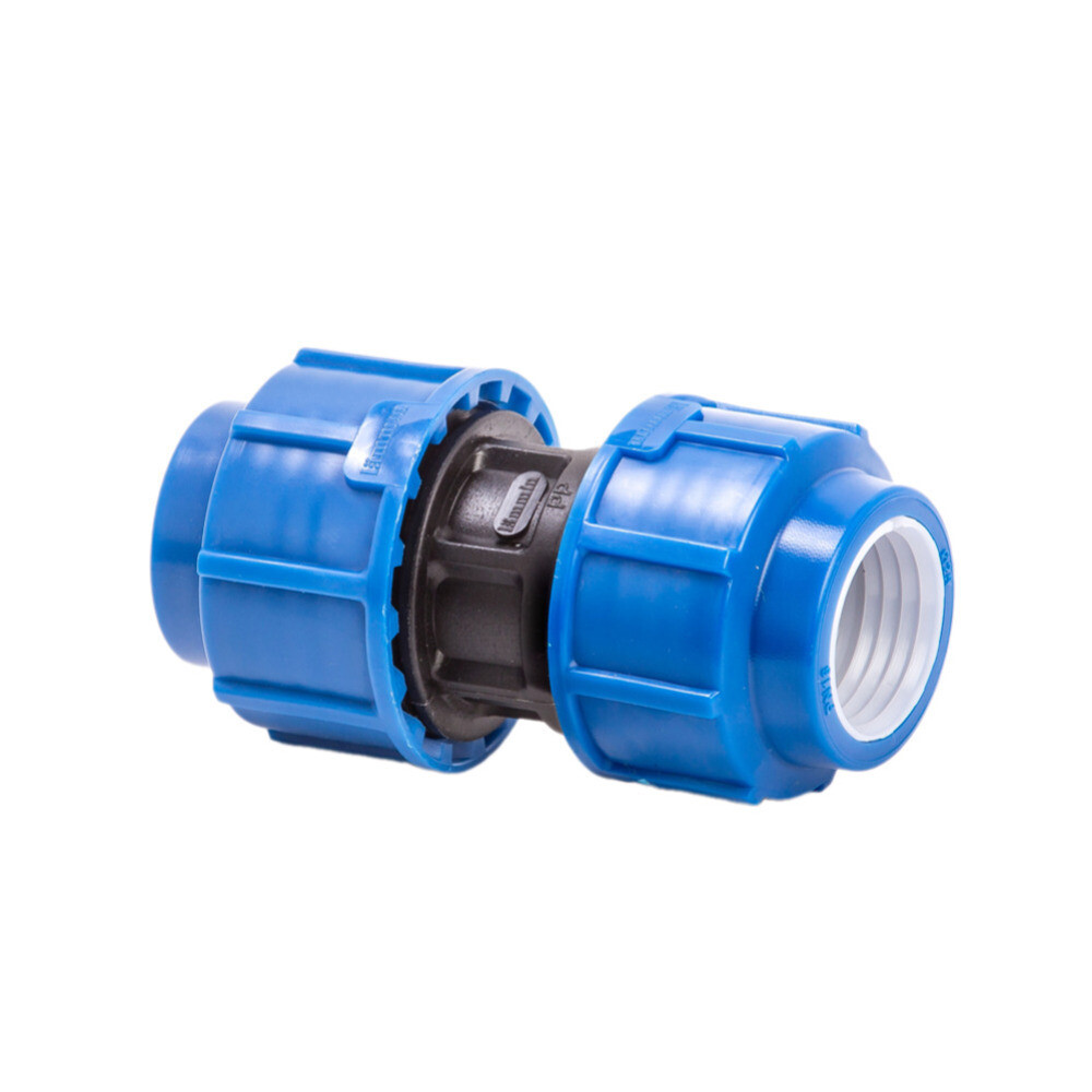 Муфта компрессионная соединительная предназначена для обеспечения надежного соединения двух полиэтиленовых труб равного диаметра между собой при организации систем питьевого или технического водопровода с рабочим давлением до 10-16 атмосфер (в зависимости от диаметра труб).