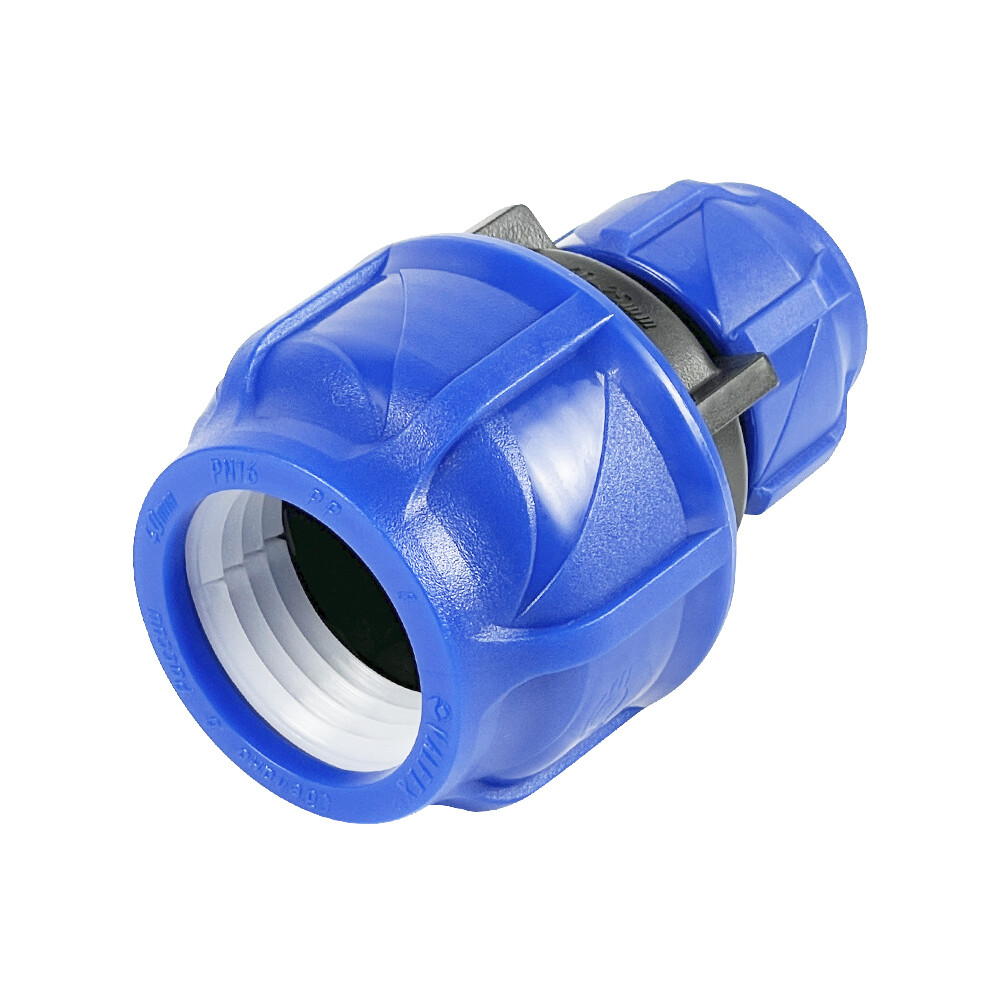 Муфта компрессионная переходная предназначена для соединения полиэтиленовых труб разного диаметра, для транспортирования воды с температурой до 40°С в системах хозяйственно-питьевого водоснабжения, а также для транспортирования других жидких сред, к которым материал фитинга и его уплотнительные элементы химически устойчивы.