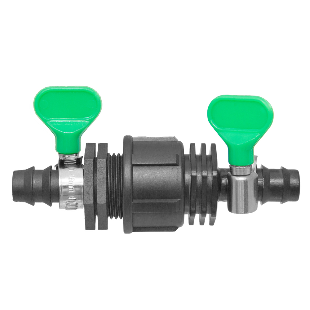 В него входит два пластиковых штуцера на резьбу 3/4 (один с наружной резьбой, другой с внутренней) для перехода с резьбы таймера на шланг, либо ПНД трубку диаметра 16 мм и два хомута с бабочкой для надежного и герметичного соединения штуцера и шланга.