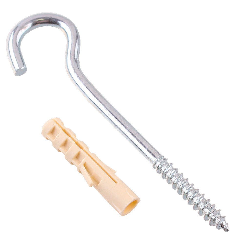 Состав: Крюк-шуруп полукольцо 6х80 — 4 шт; Дюбель нейлоновый распорный 8х40 — 4 шт.