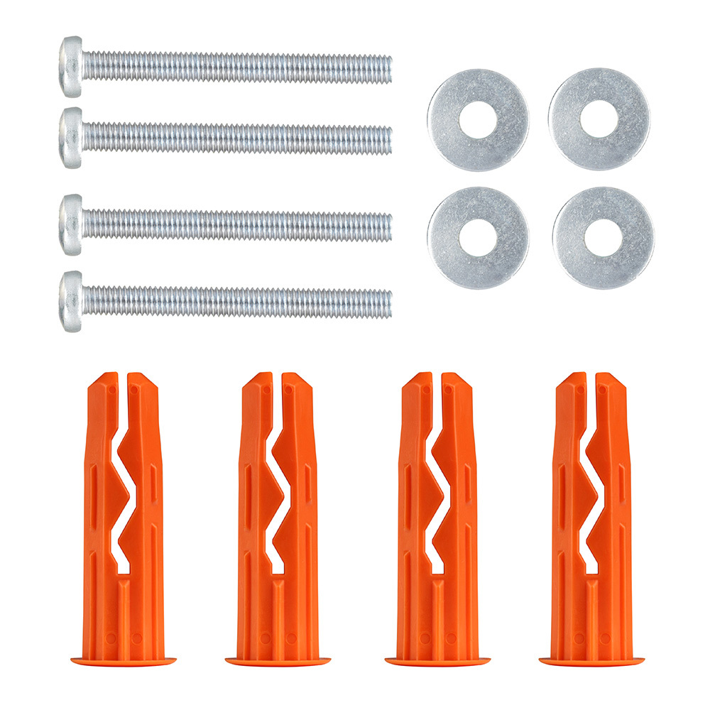 Состав комплекта: Дюбель универсальный нейлоновый 10×40 мм — 4 шт.; Винт DIN 7985 5×40 мм оцинкованная сталь — 4 шт., Шайба DIN 9021 М5 оцинкованная сталь — 4 шт.