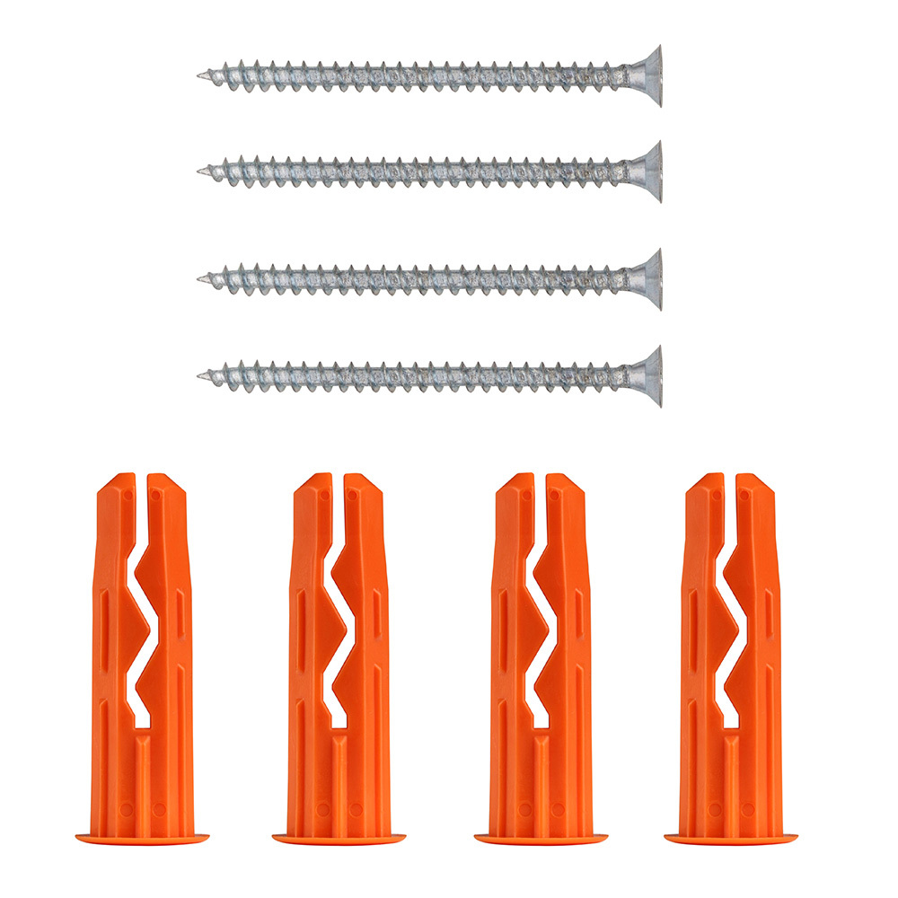 Состав комплекта: Дюбель 10×40 мм нейлон — 4 шт., Шуруп 5×50 мм оцинкованная сталь — 4 шт.