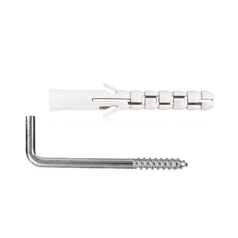 Нейлоновый дюбель и крюк-шуруп, обеспечат надежное и долговременное крепление в стене.