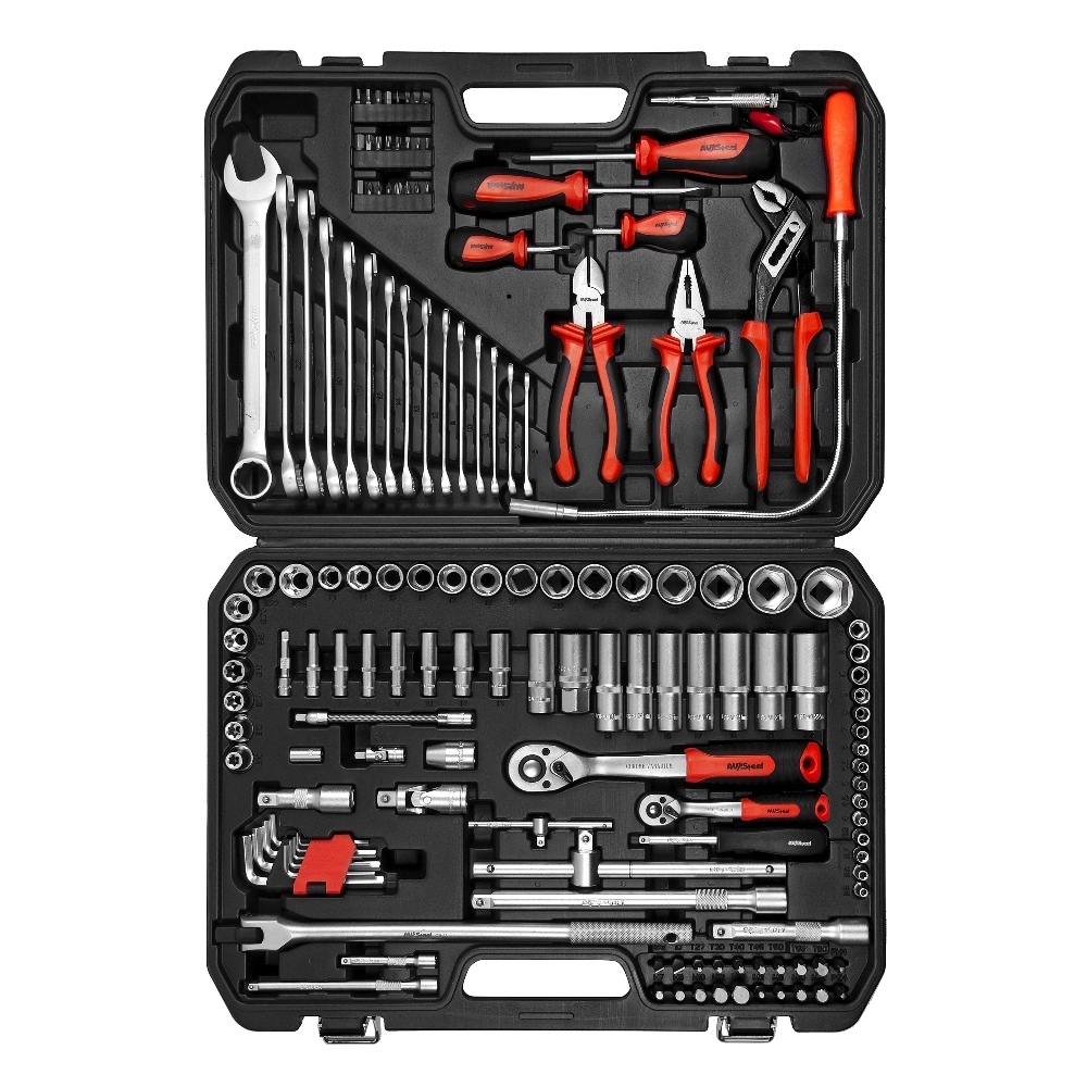 Набор профессионального инструмента AV Steel 147 предметов, AV-011147 применяется для выполнения слесарных и монтажных работ. Все составляющие комплекта изготовлены из хромованадиевой стали с матовом покрытием. Головки оснащаются насечкой для удобства работы. Прочный пластиковый кейс обеспечивает компактное хранение инструмента.
