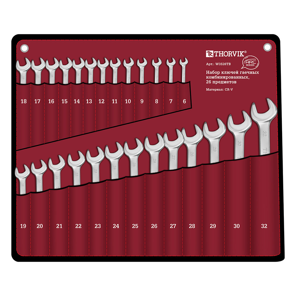 Набор комбинированных ключей Thorvik Arc 6-32 мм в сумке (26 шт.)