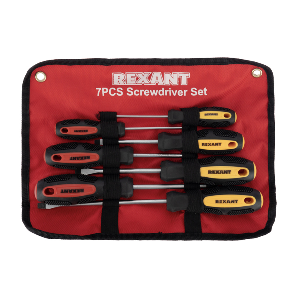 — Набор отверток SL3x75 мм, SL5x75 мм, SL6x100 мм, SL6x150 мм, PH0x75 мм, PH1x75 мм, PH2x100 мм — 7 шт.