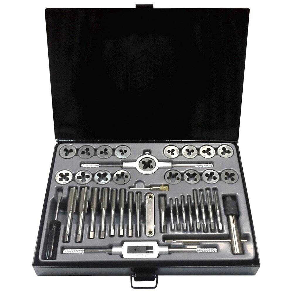 Предназначен для нарезания, калибрования внешней и внутренней резьбы. Плашки и метчики изготовлены из инструментальной легированной стали 9ХС, обладают повышенной износостойкостью, упругостью, сопротивлением к изгибу и кручению, стойкостью к контактным нагрузкам. Набор метчиков из 41 предмета. Berger.