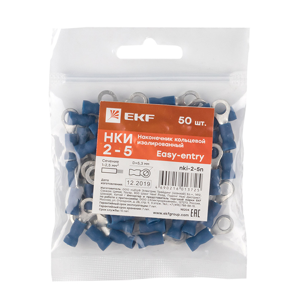 Наконечник кольцевой изолированный EKF PROxima НКИ d5,3 мм 1,0-2,5 кв. мм (50 шт.)