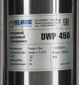 Насос дренажный Belamos для грязной воды 116 л/мин (DWP450)