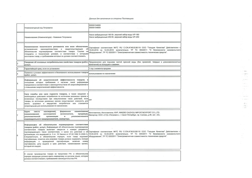 Комплектация: Электронасос со шнуром питания – 1 шт., кабель (15 м) – 1 шт., шланговый зажим – 1 шт., руководство по эксплуатации – 1 шт., упаковка – 1 шт.