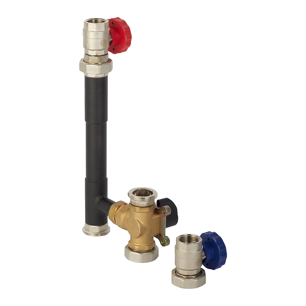 Предназначена для присоединения контура теплого пола/бойлера/радиаторного отопления с возможностью ручной регулировки температуры жидкости или автоматической регулировки с помощью установки сервопривода и термостатического датчика на трехходовой кран в подающей линии.
