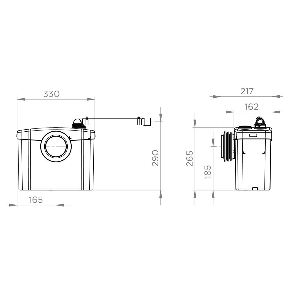 Канализационный насос Sanibroyeur, предназначенный для измельчения и отведения фекальных стоков от унитаза с горизонтальным выходом.