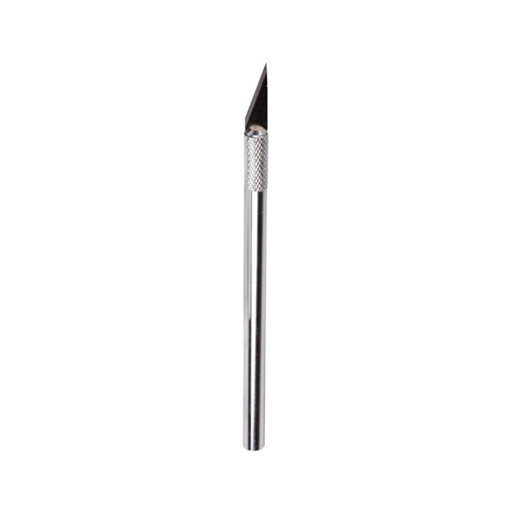 Нож с перовым лезвием подходит для художественных и дизайнерских работ. Режет различные материалы — бумагу, фольгу, древесину, пластик, ткань и кожу. Лезвие ножа изготовлено из инструментальной стали и надежно фиксируется. Металлический корпус ножа обеспечивает долгий срок службы. Замена лезвия осуществляется вручную. Ширина лезвия — 8 мм , длина лезвия — 25 мм, толщина лезвия — 0,5 мм.