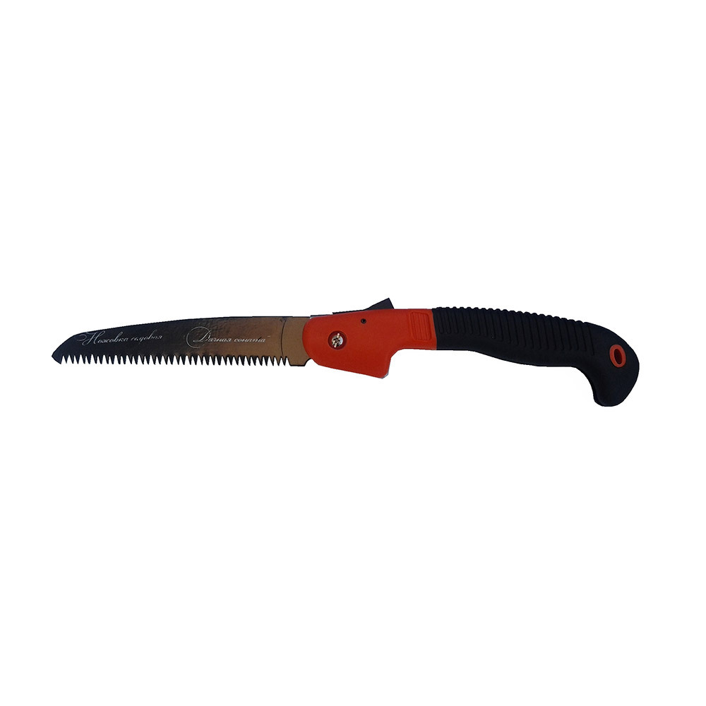 Надёжный фиксатор, позволяющий держать ножовку в сложенном состоянии при необходимости. Тип — прямая. Конструкция — складная.