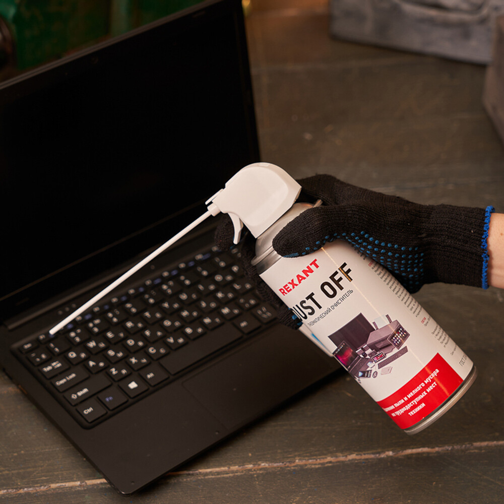 DUST OFF — удаляет пыль и другие загрязнения направленным потоком сжатого воздуха. Разработан и рекомендуется для эффективной бесконтактной чистки чувствительного электронного оборудования и компонентов, устройств обработки данных, персональных компьютеров, оптических приборов, фотографических материалов, микроскопов и лабораторного оборудования.