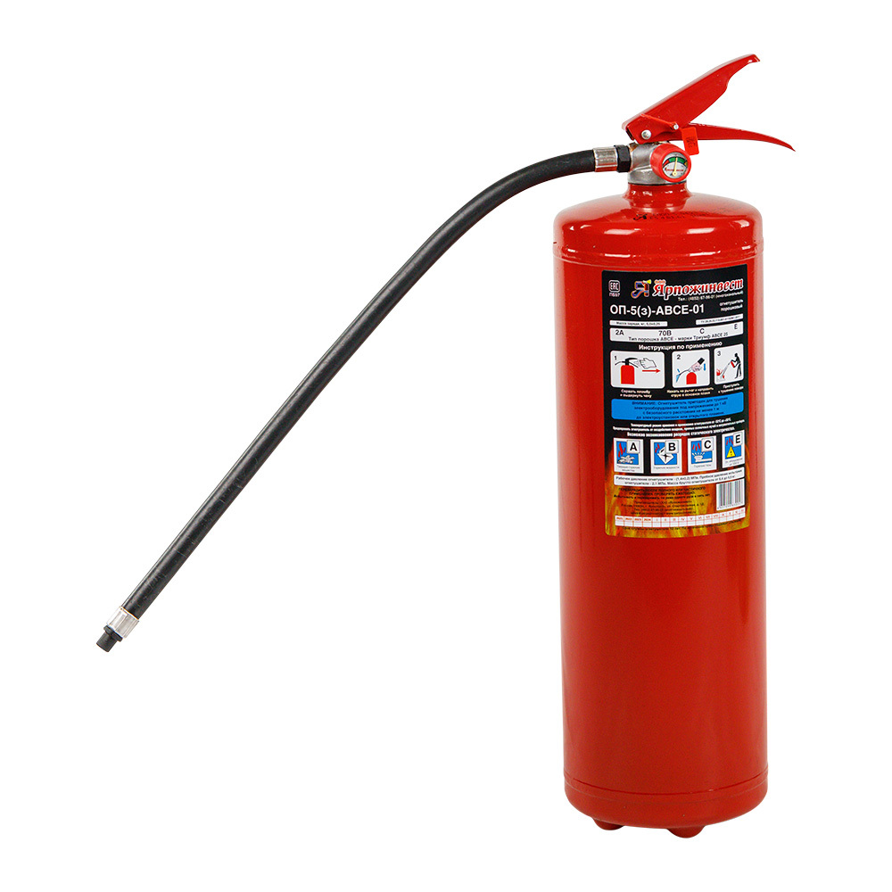 Изготавливается в соответствии с ГОСТ Р 51057-2001. Огнетушитель порошковый ОП-5 АВСЕ предназначен для защиты помещений производственного и хозяйственного назначения, применения на автомобильном, железнодорожном, речном транспорте, морских судах и в бытовых условиях в качестве первичных средств тушения.