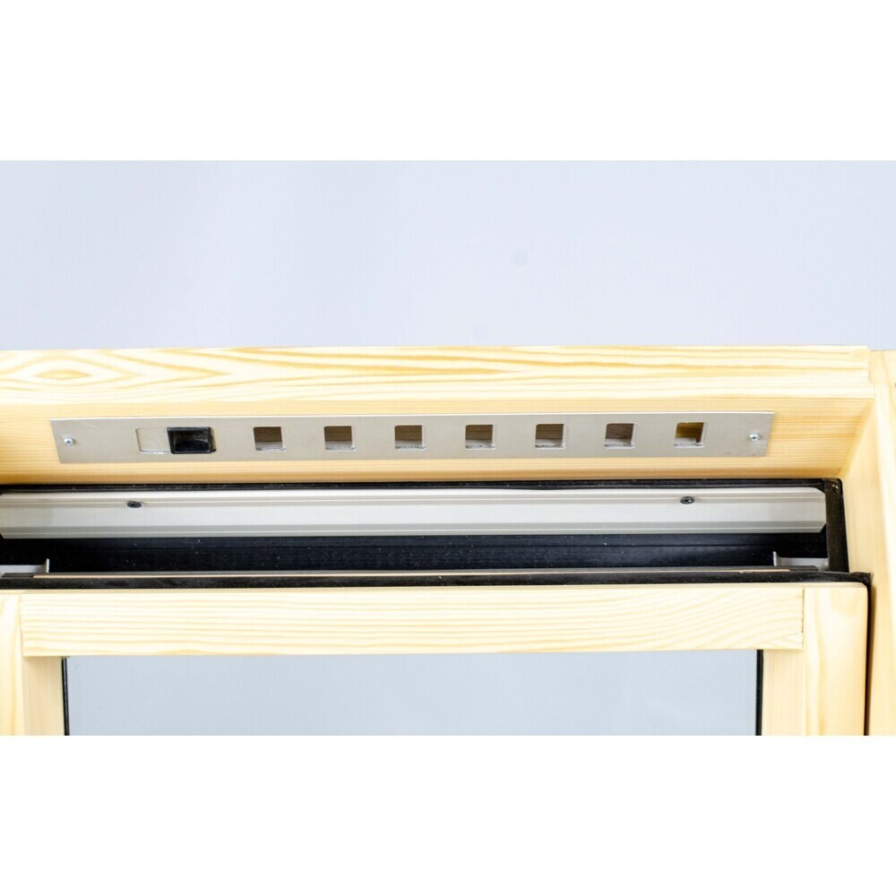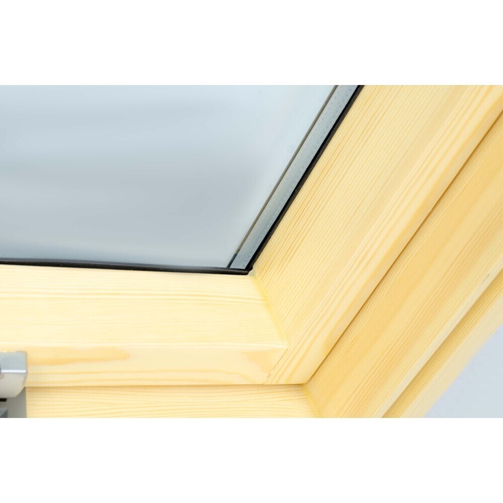 Мансардное окно FTP-V (CH) top-hung изготовлено из сосны высокого качества без сучков и склеек на видимой части, древесина пропитана антисептиком и покрыта 2 слоями полиакрилового лака.