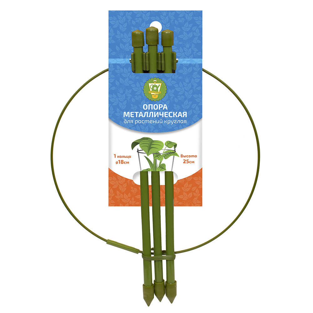 Используется для поддержки всех видов комнатных растений. Опора оснащена кольцом d18,5 см, что позволяет зафиксировать стебли и листья растения по высоте в необходимом вам месте. Имеет усиленные ножки d8 мм.