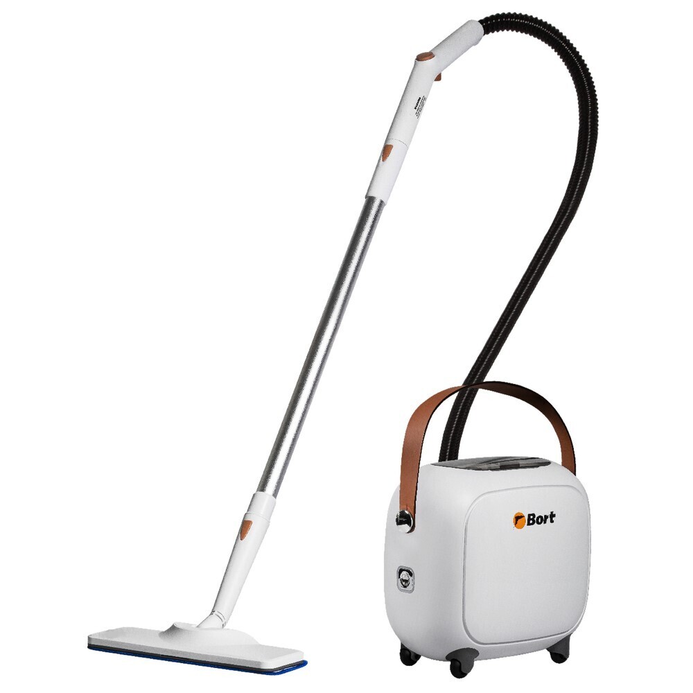 Удобный в использовании напольный пароочиститель оснащен длинным шлангом для подачи пара (1,8 м), шнуром питания (5 м) и ручкой для переноски. Стильный дизайн и белый цвет корпуса гармонично впишется в домашний интерьер. Регулярная уборка с использованием пароочистителя бренда Bort способно обеспечить здоровую атмосферу, помогает поддерживать оптимальную влажность в доме или квартире.