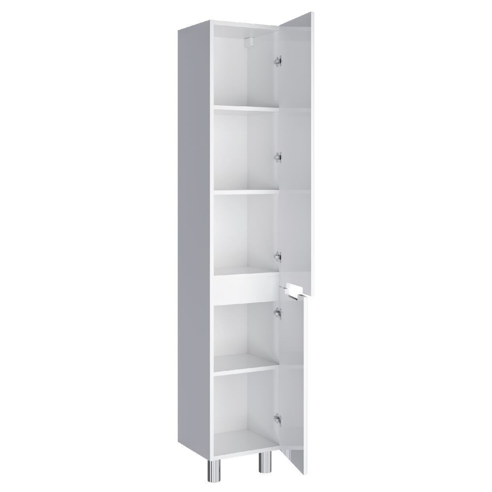 Шкаф-пенал универсальный SanStar Ориана для ванной комнаты выполнен в современном стиле. Для изготовления корпуса используется влагостойкий ЛДСП – покрытие матовое, фасад изготавливается из МДФ. Для покрытия фасада изделия используется высококачественная глянцевая пленка увеличенной толщины. Фурнитура – хром. Петли с доводчиками Boyard. Две дверцы с доводчиками, открывающиеся вправо. Шкаф-пенал можно установить на пол или подвесить.