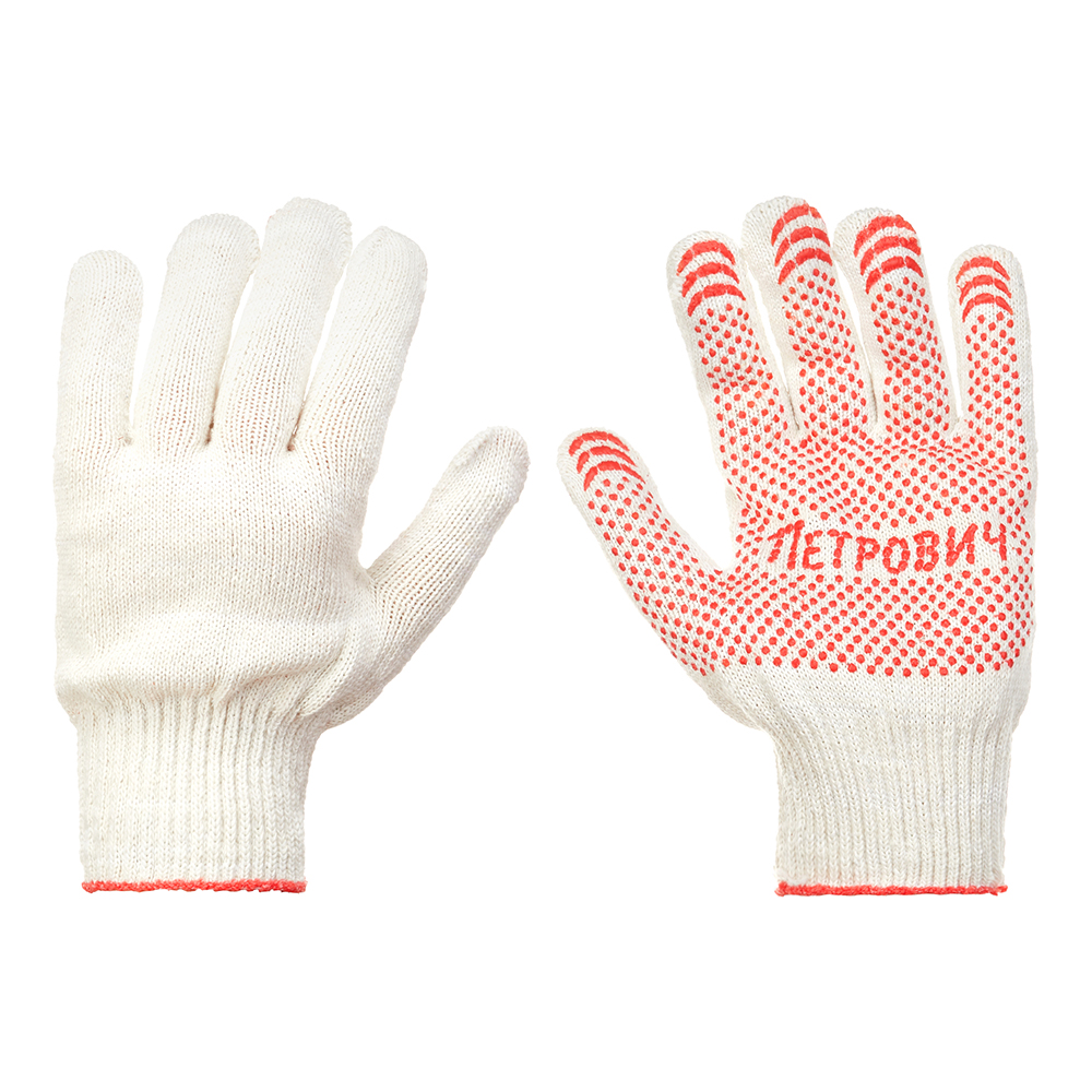Перчатки х/б 6 нитей с ПВХ покрытием Петрович белые 10 (XL)
