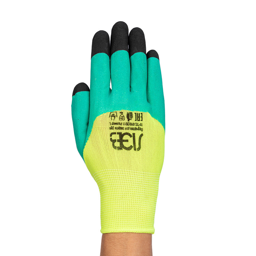 Перчатки полиэстеровые 2 нити с двойным латексным обливом тактильные ЛЭВ черно-зеленые 10 (L)