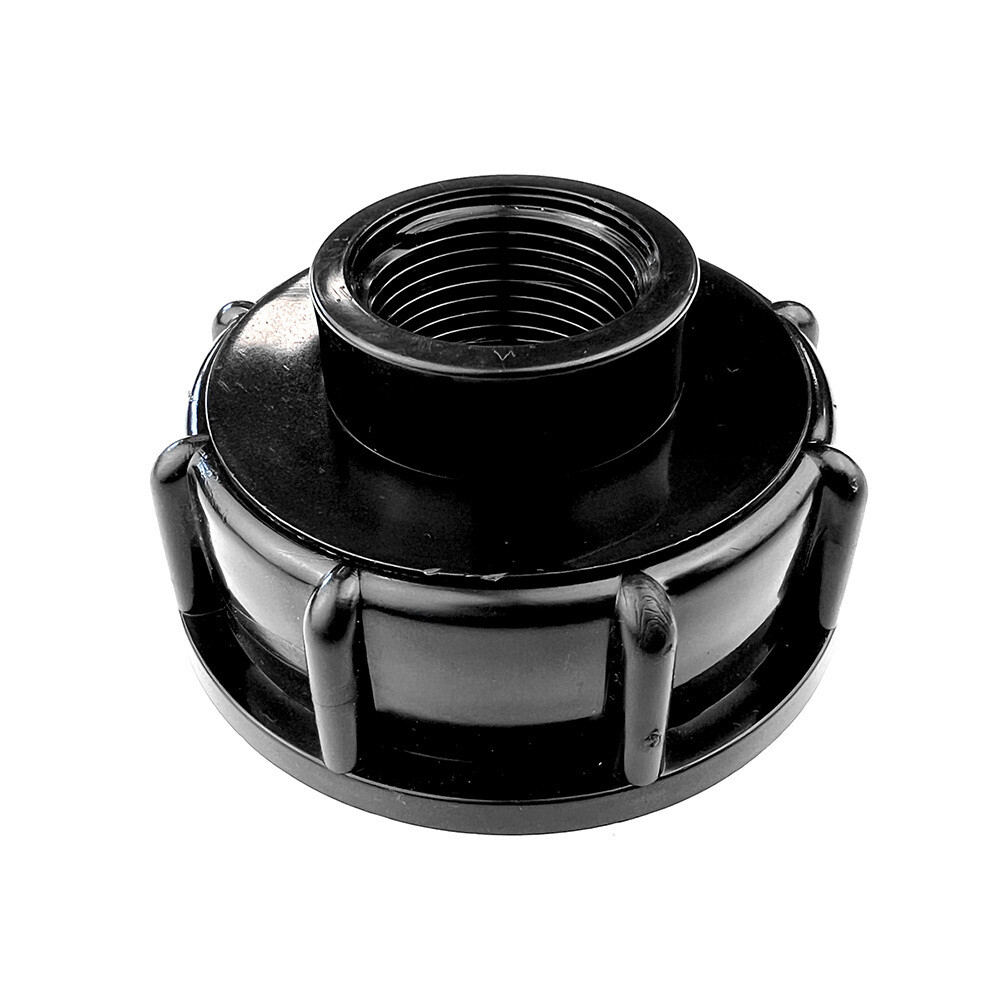 Пластиковая гайка для кубовой емкости изготовлена из прочного пластика, имеет две внутренние резьбы — 3/4″ и 2″. Устанавливается на сливную горловину кубовой емкости. В гайку монтируется кран с наружной резьбой 3/4″.
