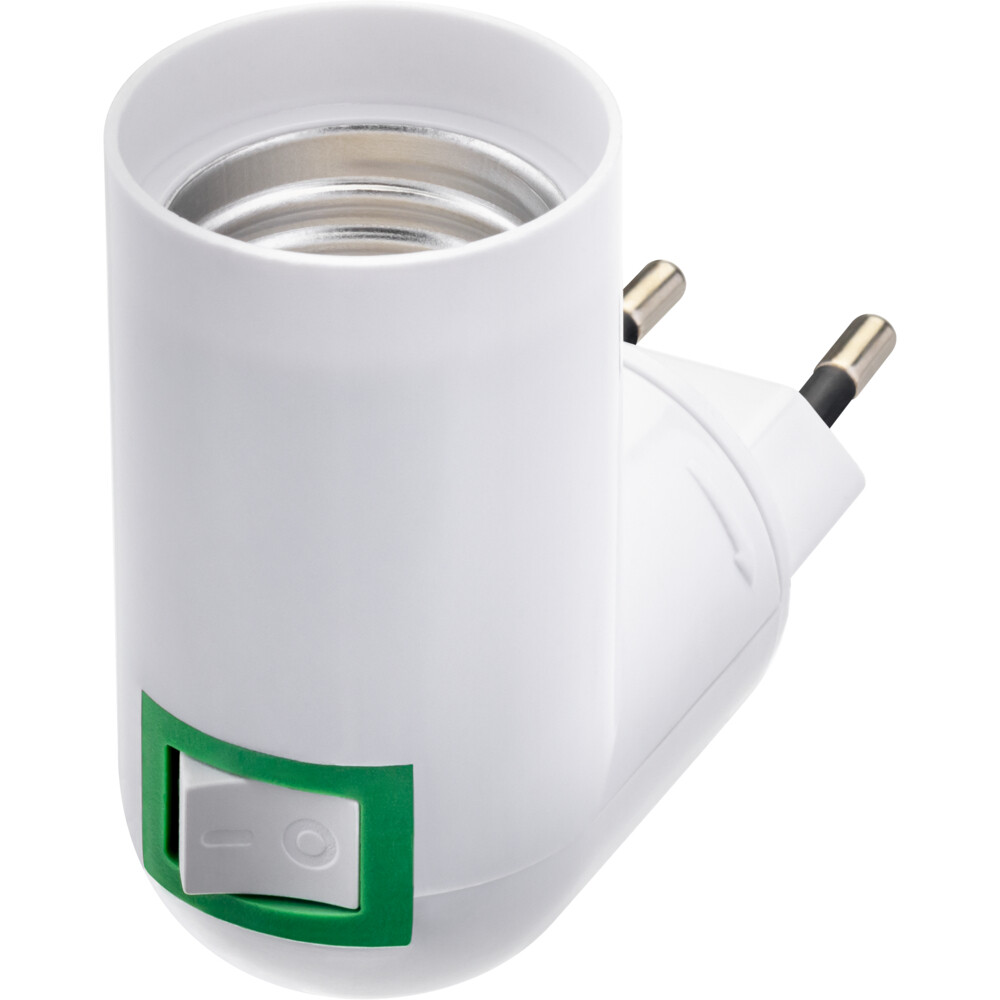 Переходник вилка-Е27 с выключателем позволяет подключить лампу непосредственно к розетке или удлинителю и обеспечить освещение там, где это необходимо. Прибор особенно востребован на стройках, в гаражах, дачных домах, теплицах и т. д. Используется в качестве временного источника света. Совмещается со всеми типами ламп с цоколем E27. Благодаря изогнутой форме может использоваться в качестве бра с лампой, повернутой как вверх, так и вниз. Корпус оснащен кнопкой и поворотным механизмом, что позволяет регулировать угол наклона, включать и выключать прибор, не вынимая из розетки.