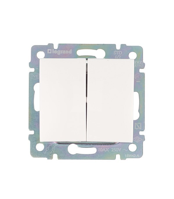 Переключатель Legrand Valena двухклавишный встраиваемый белый (694266)