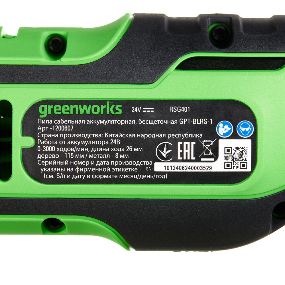 Пила сабельная аккумуляторная Greenworks GPT-BLRS-1 24 В без АКБ и ЗУ (1200607)