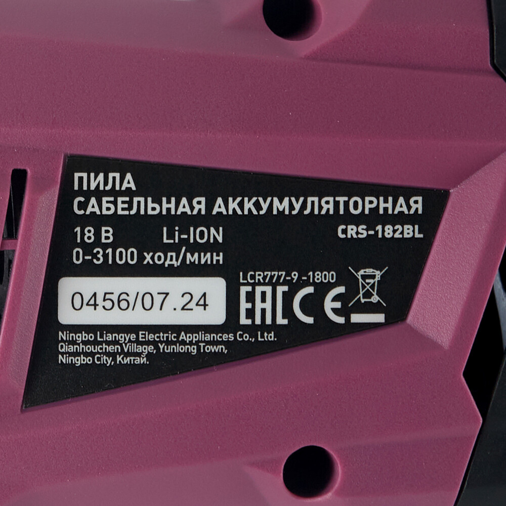 Пила сабельная аккумуляторная КМ АТОМ 18 В без АКБ и ЗУ (СRS-182BL)